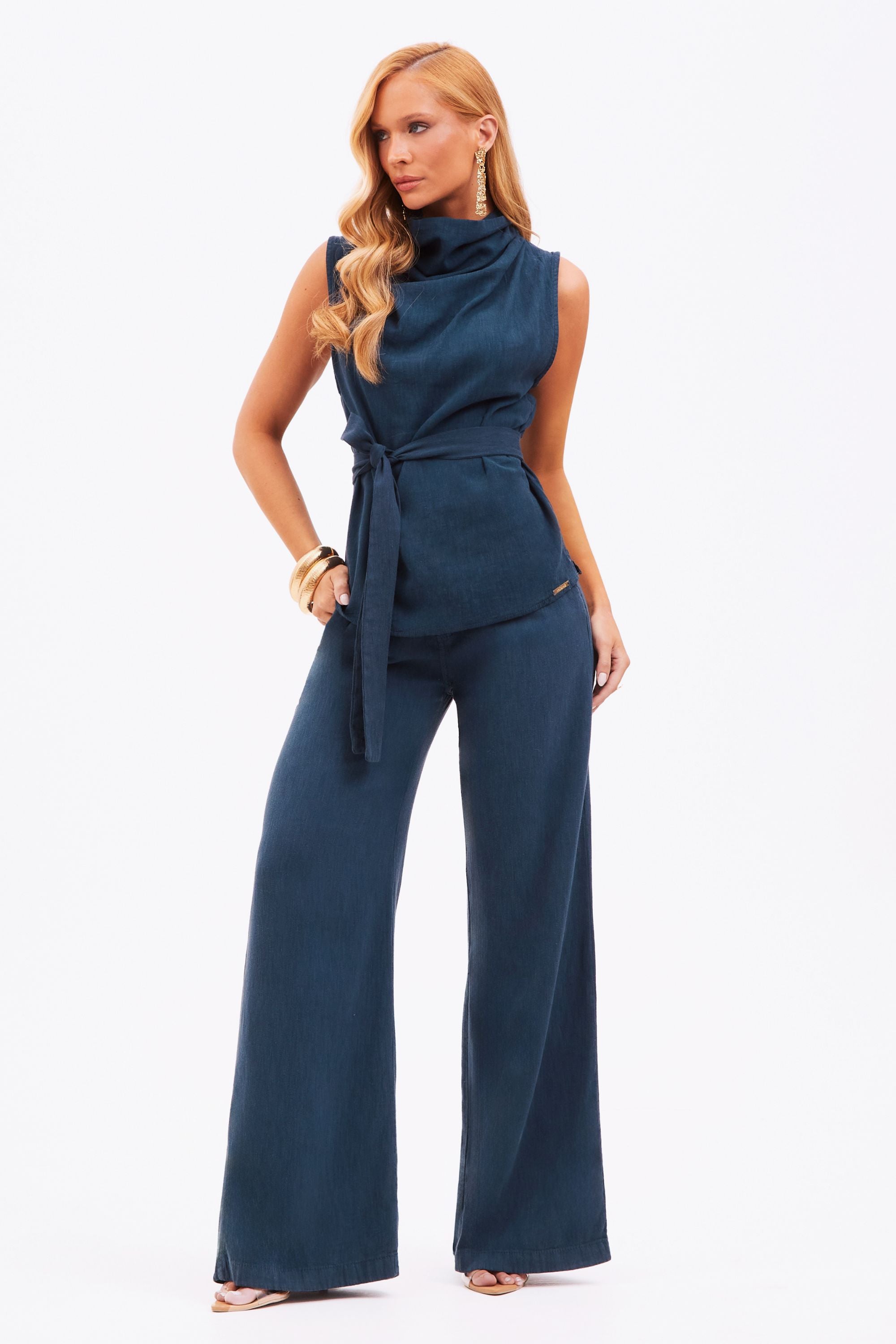 A Blusa Feminina de Linho com Gola Drapeada Dunas é a união perfeita entre leveza, conforto e elegância natural.