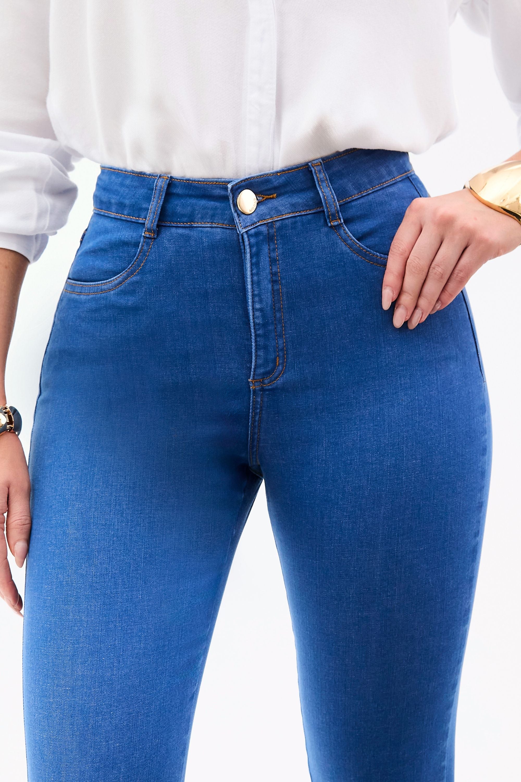 Calça Jeans Flare Modeladora Linea Cós Médio Jeans Médio é clássica, tecnológica e versátil. Com modelagem flare, possui cós médio e barra tradicional. Uma peça básica, que valoriza a silhueta e garante conforto, possibilitando inúmeras combinações para seu dia-a-dia!