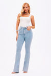 A Calça Jeans Flare Modeladora Revolucionária Cós Super Alto Barra Corte a Laser Escura é um jeans tecnológico, clássico e hiper confortável. Esta peça possui um caimento impecável, com cós alto, modelagem flare e barra com corte a laser. Ela é perfeita para combinações elegantes e modernas.