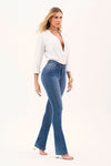 Descubra o jeans que acompanha cada movimento e variação do seu corpo sem perder a forma. A Calça Jeans Modeladora Inesquecível Boot Cut Clara Cós Médio combina elasticidade de alta performance com recuperação de forma avançada para o ajuste perfeito o dia todo.