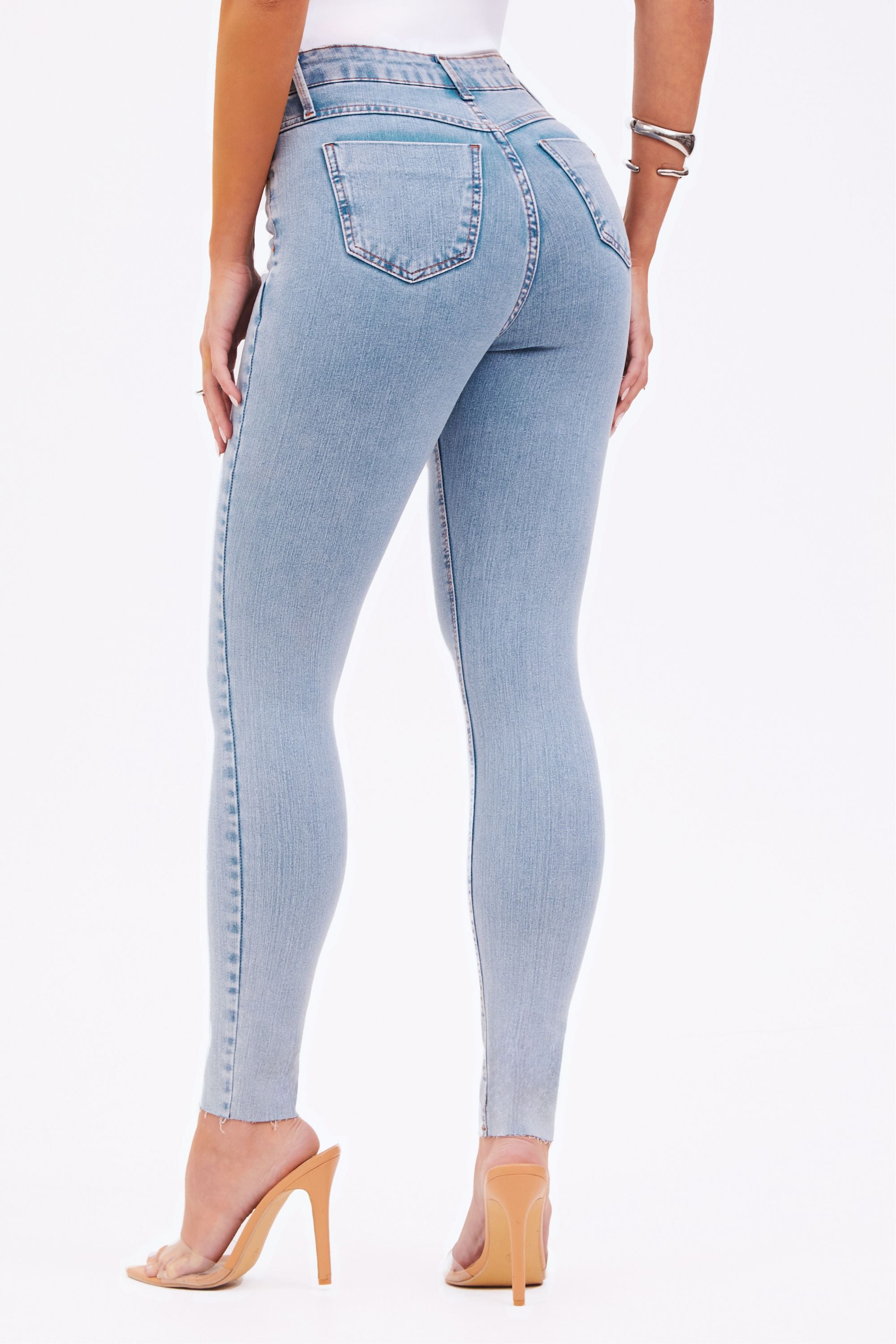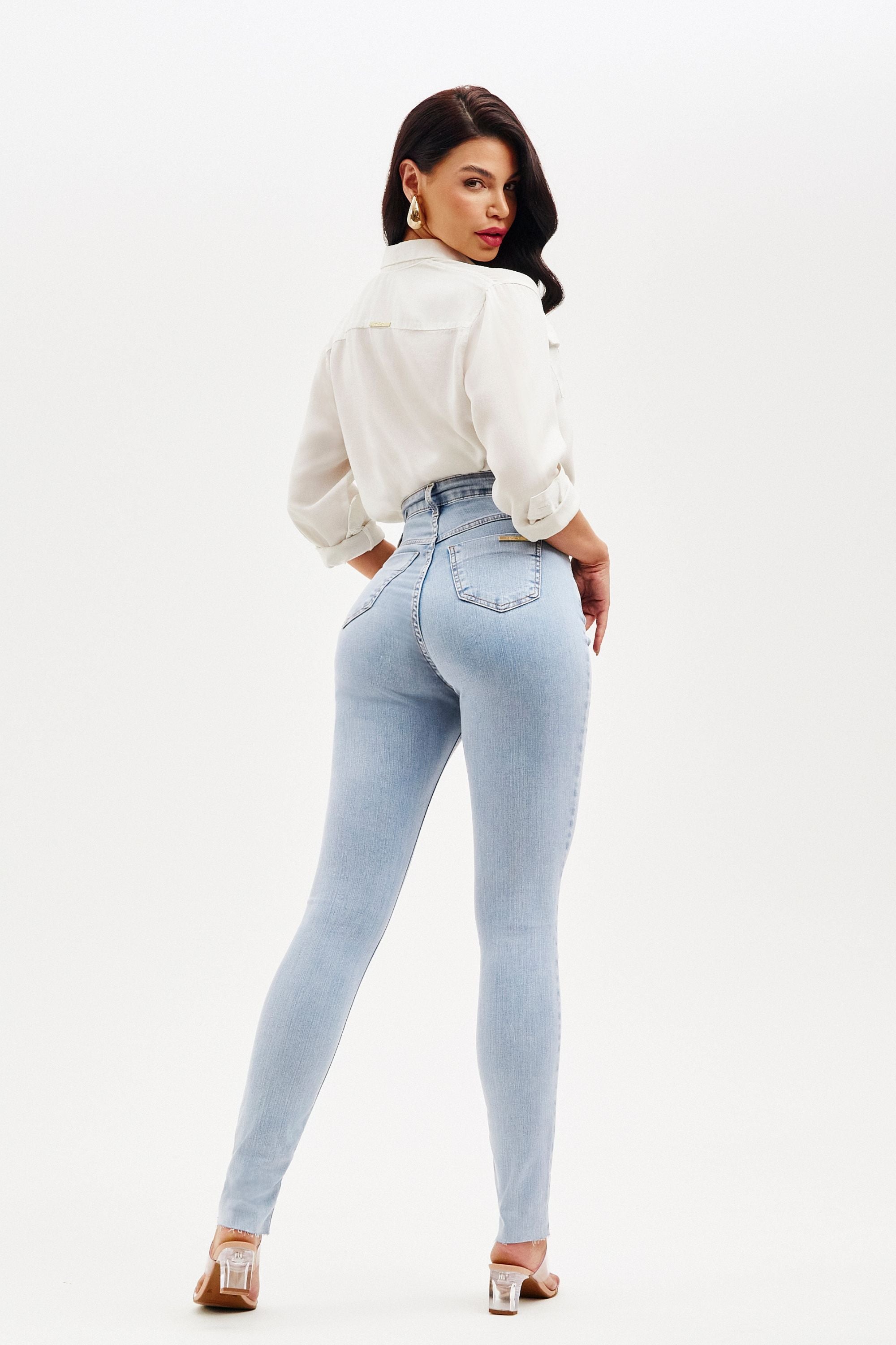 A Calça Jeans Skinny Modeladora Revolucionária Cós Super Alto Barra Corte a Laser Clara é extremamente confortável, flexível e tecnológica. É confeccionada com jeans hiper elástico, apresenta cós super alto, modelagem skinny e barra com corte a laser. Sua modelagem vai realçar as curvas do seu corpo, e te deixar ainda mais linda. Ela vai ser a queridinha do seu closet!