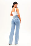 A Calça Jeans Wide Leg Basic Cós Super Alto Barra Tradicional Clara é clássica, versátil e moderna. A elasticidade é na medida certa, com lavagem clara,  efeito super modelador e barra tradicional. Com uma modelagem curinga aliada a muito conforto é ideal para criar combinações charmosas e cheio de estilo!
