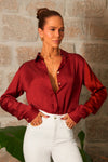 Elegância que se sente no toque. Composta por 100% viscose, esta camisa apresenta um efeito light seda, com brilho aveludado e sofisticado — diferente do cetim comum, que reflete de forma mais intensa.