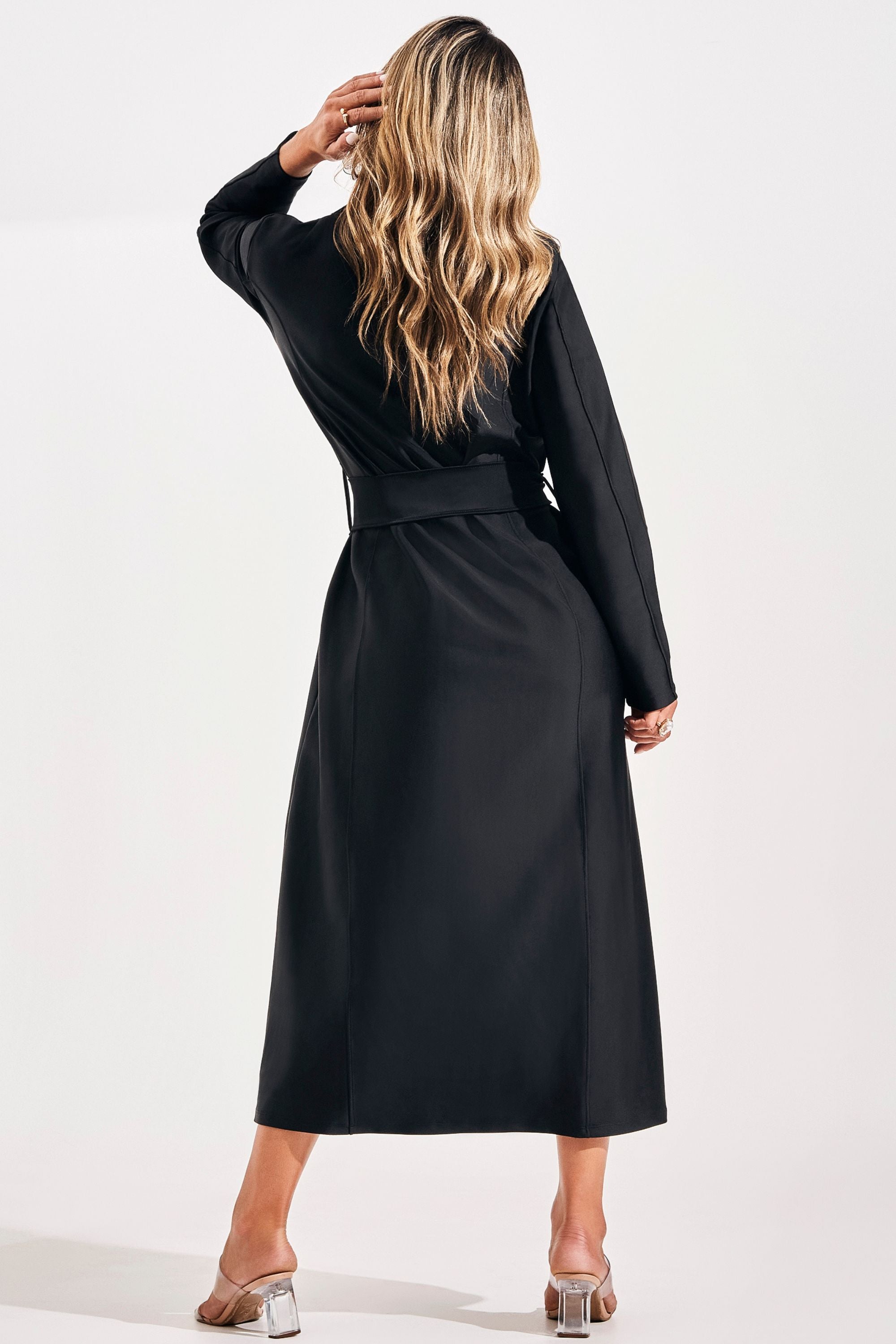 Capa Alongada Glam Preta é moderna, atemporal e tecnológica. Apresenta um corte estruturado, caimento fluido que valoriza a silhueta e fechamento com cinto ajustável na cintura que permite diferentes formas de uso. A peça é ideal para composições desde o casual chic até ocasiões mais formais.