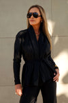 A Capa Glam Preta é atemporal e clássica, além de possuir um corte elegante e ajustado ao corpo. O design apresenta um cinto que marca a cintura, realçando a silhueta de forma sofisticada. O tecido alta qualidade proporciona um toque de luxo e modernidade, criando um visual refinado.