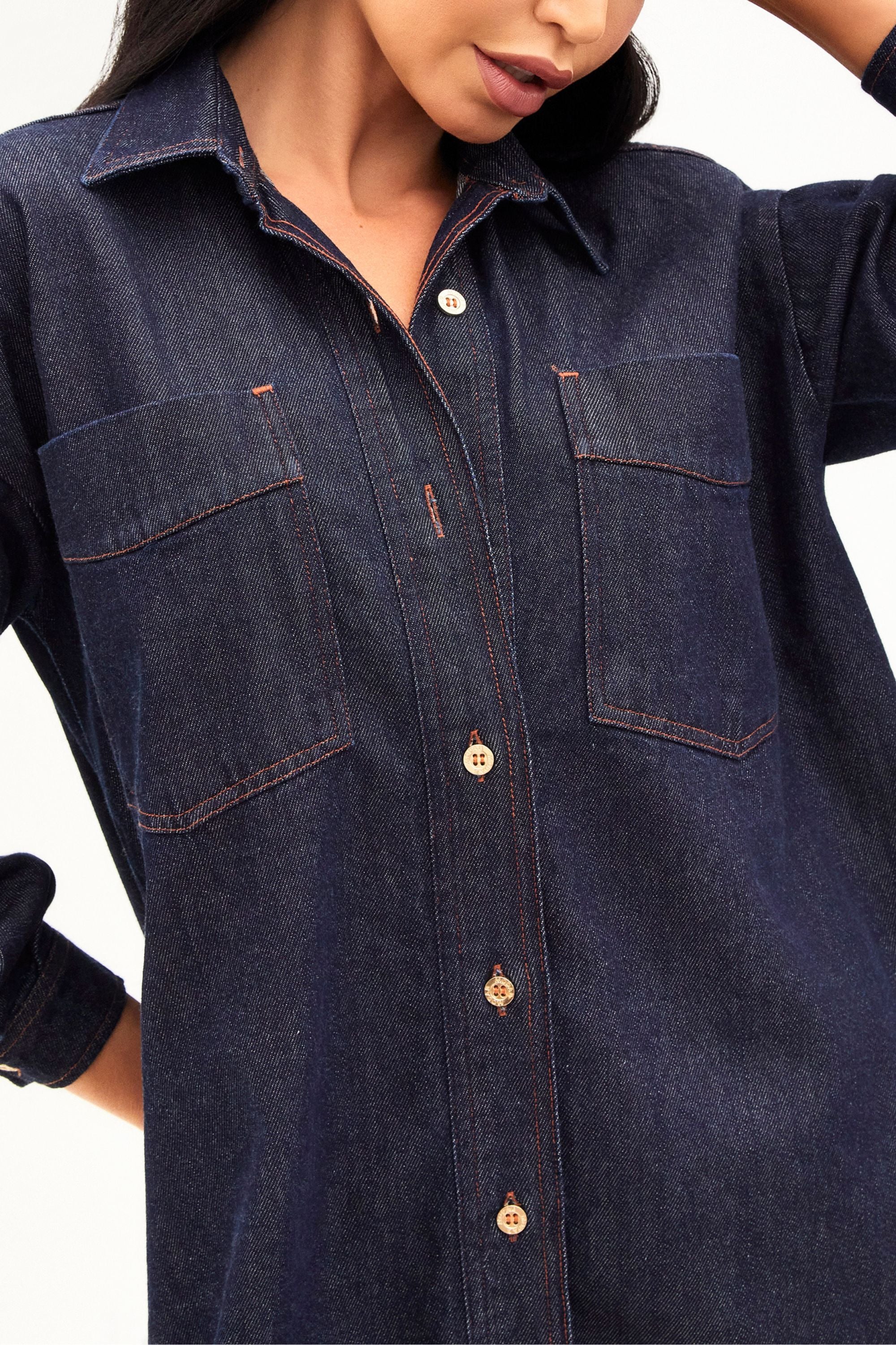 Detalhes: Comprimento alongado, modelagem oversized, bolsos frontais e fechamento com botões.