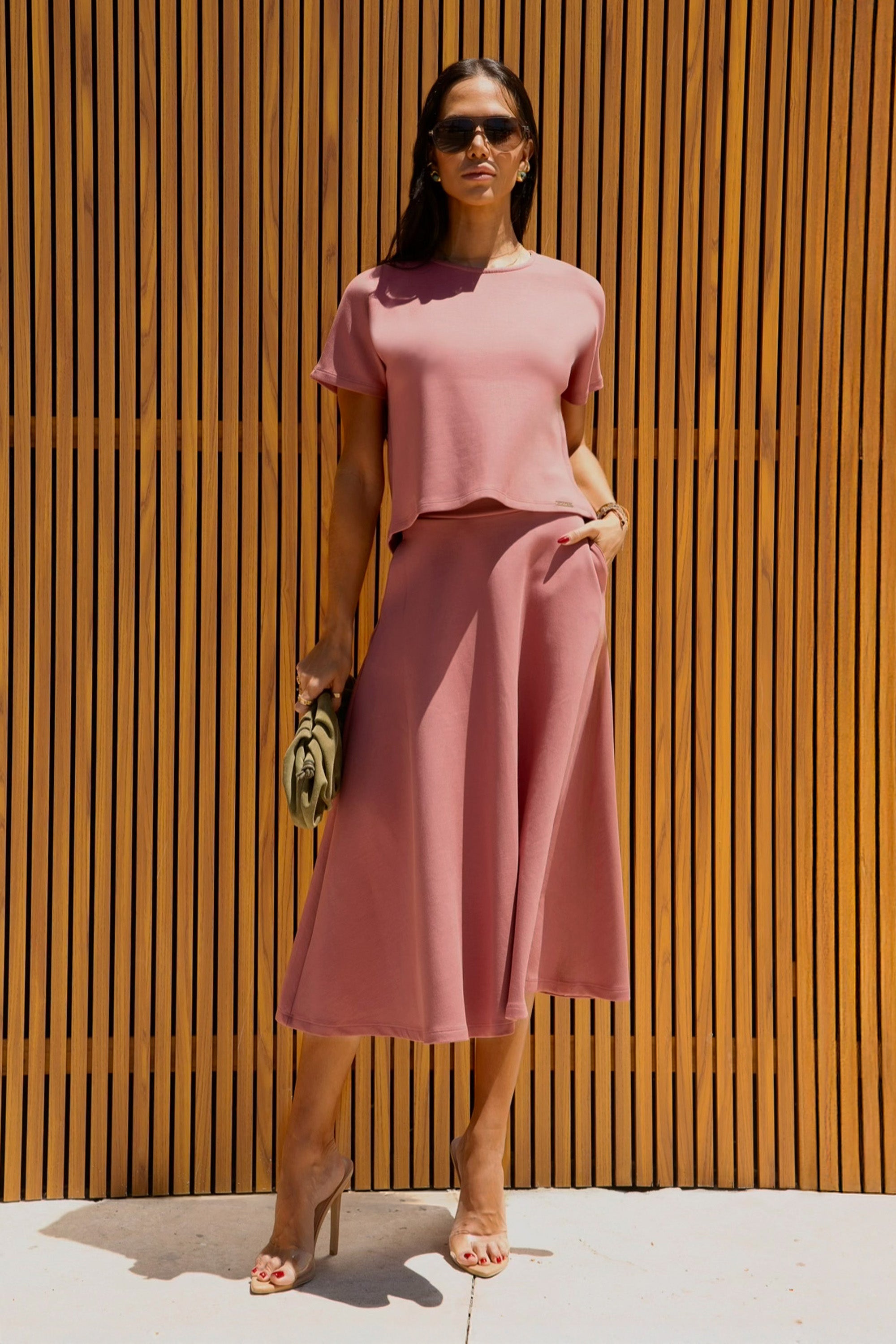 A Saia Midi Evasê Comfort Office une conforto e versatilidade em uma peça que acompanha você em todos os momentos! Com comprimento midi, design minimalista e um toque incrivelmente macio, ela se destaca pela tecnologia que se ajusta ao seu corpo e aos seus movimentos diários. Simplesmente perfeita!