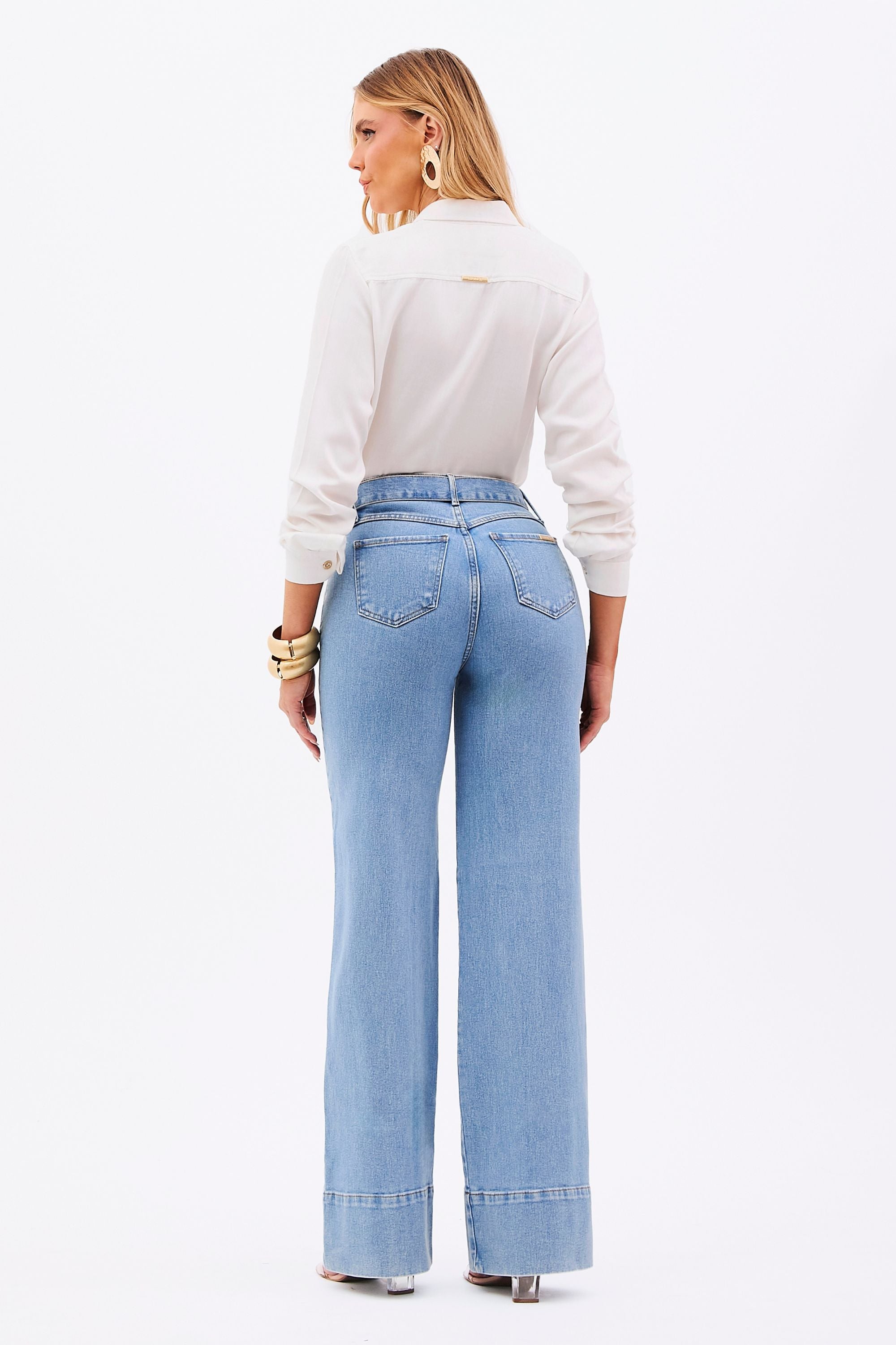 A Calça Jeans de Rica Estilo Alfaiataria Tecnológica Wide Leg Basic Cós Super Alto é contemporânea, elegante e tecnológica! Estilo Alfaiataria com modelagem wide leg, efeito super modelador e design moderno. Aquele jeans com corte sofisticado e caimento impecável, perfeito para combinações elegantes, para arrasar por onde passar! Você vai amar!