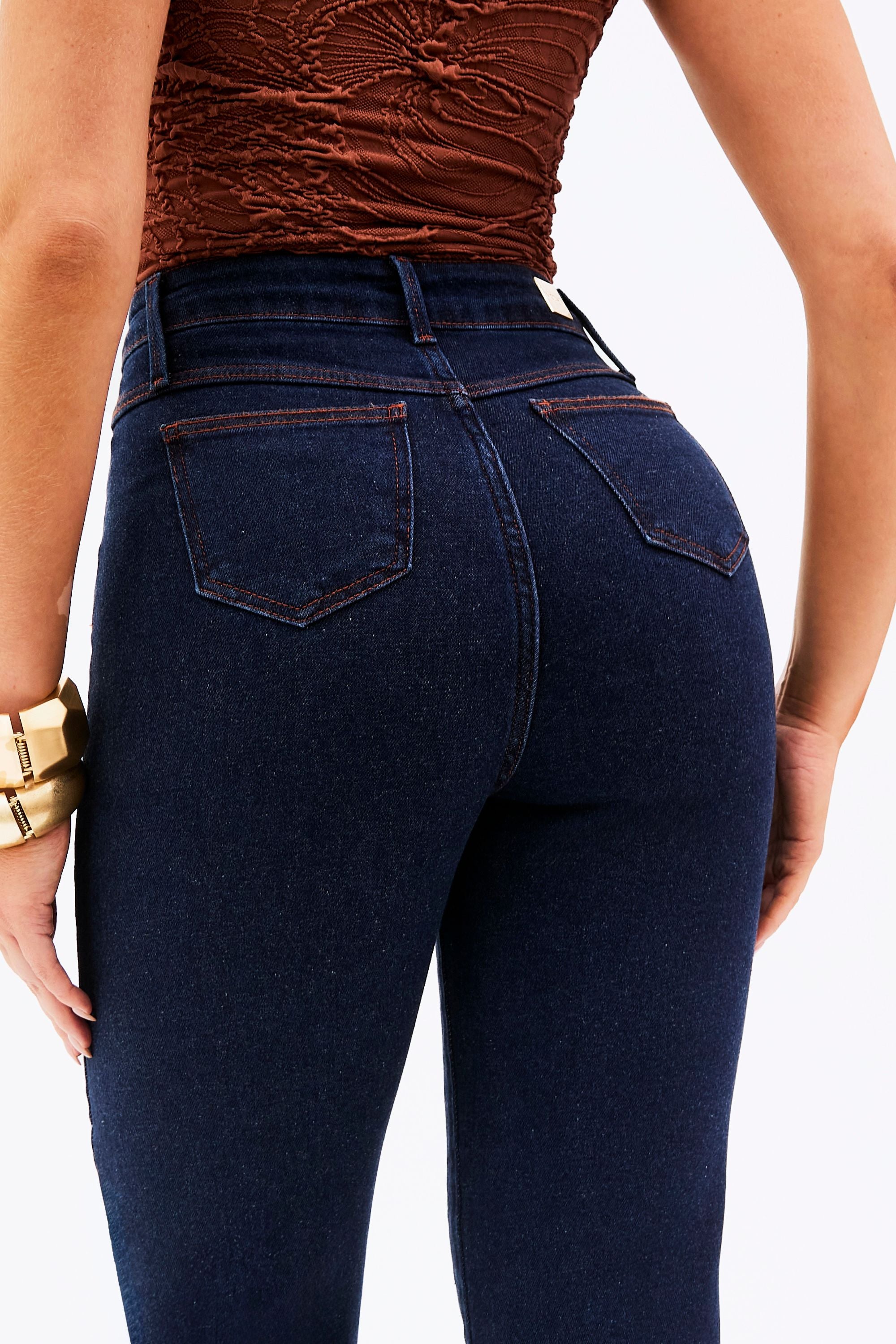 A Calça Jeans Luxury Reta Cós Super Alto Jeans Escuro é sofisticada, tecnológica e clássica. Apresenta cós super alto, modelagem reta e tecido ecológico. É a peça essencial para compor looks estilosos em qualquer dia da semana. Você vai se apaixonar!