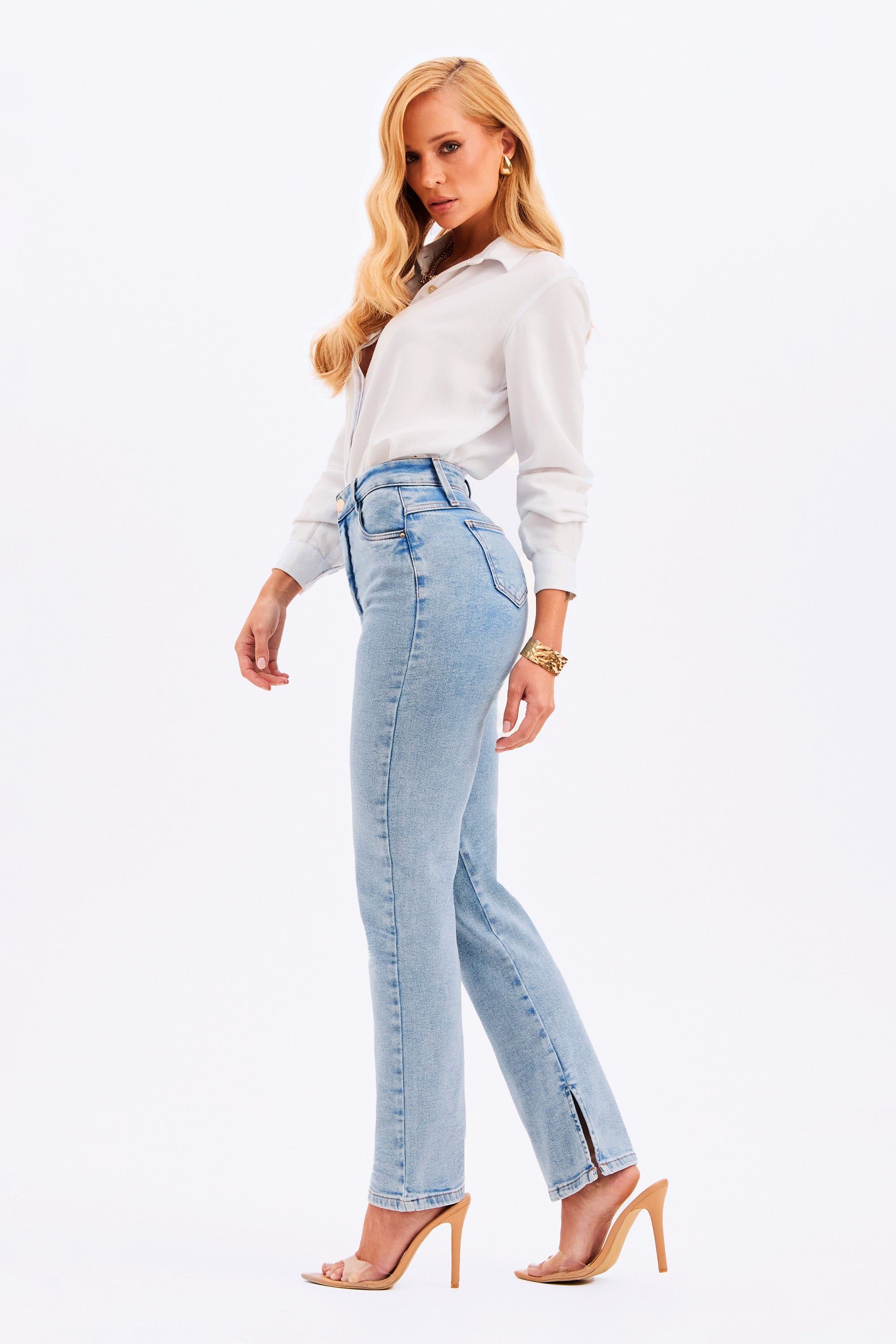 A Calça Jeans Reta Basic Cós Super Alto Clara é moderna, básica e elegante. Apresenta efeito super modelador, com lavagem clara e silhueta reta. O jeans perfeito que se adequa as suas curvas, com muito conforto, proporcionando a construção de looks super estilosos!