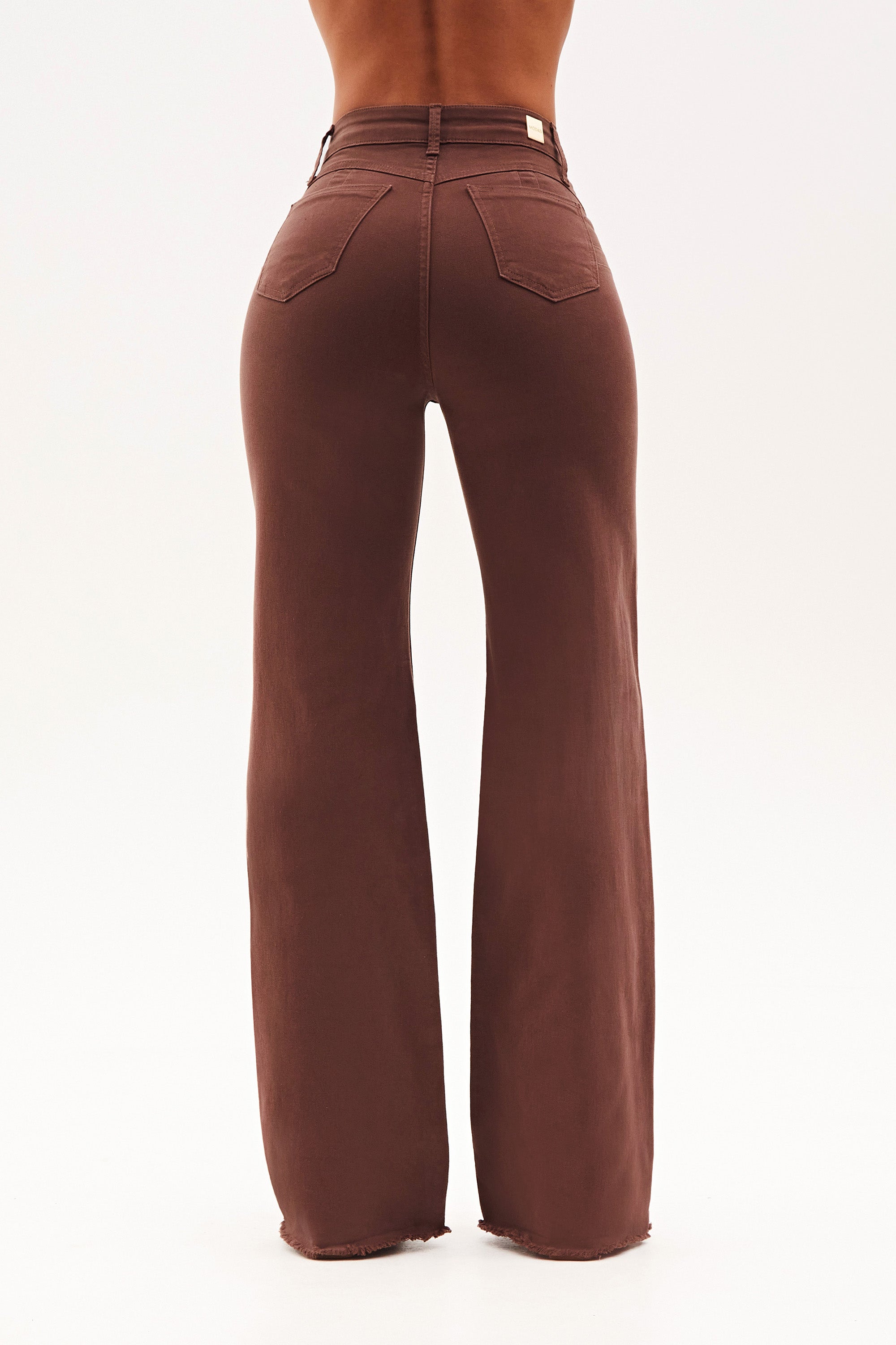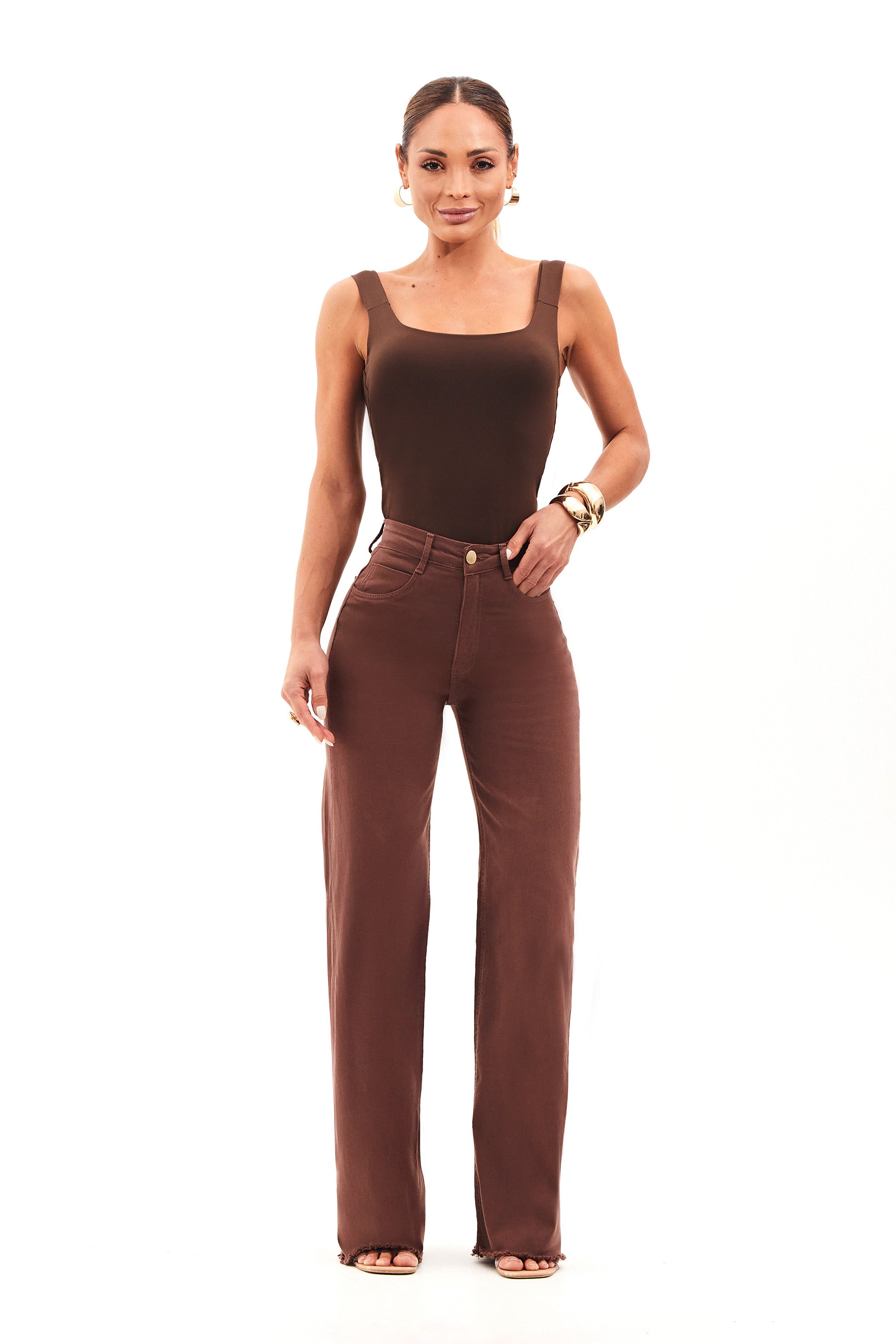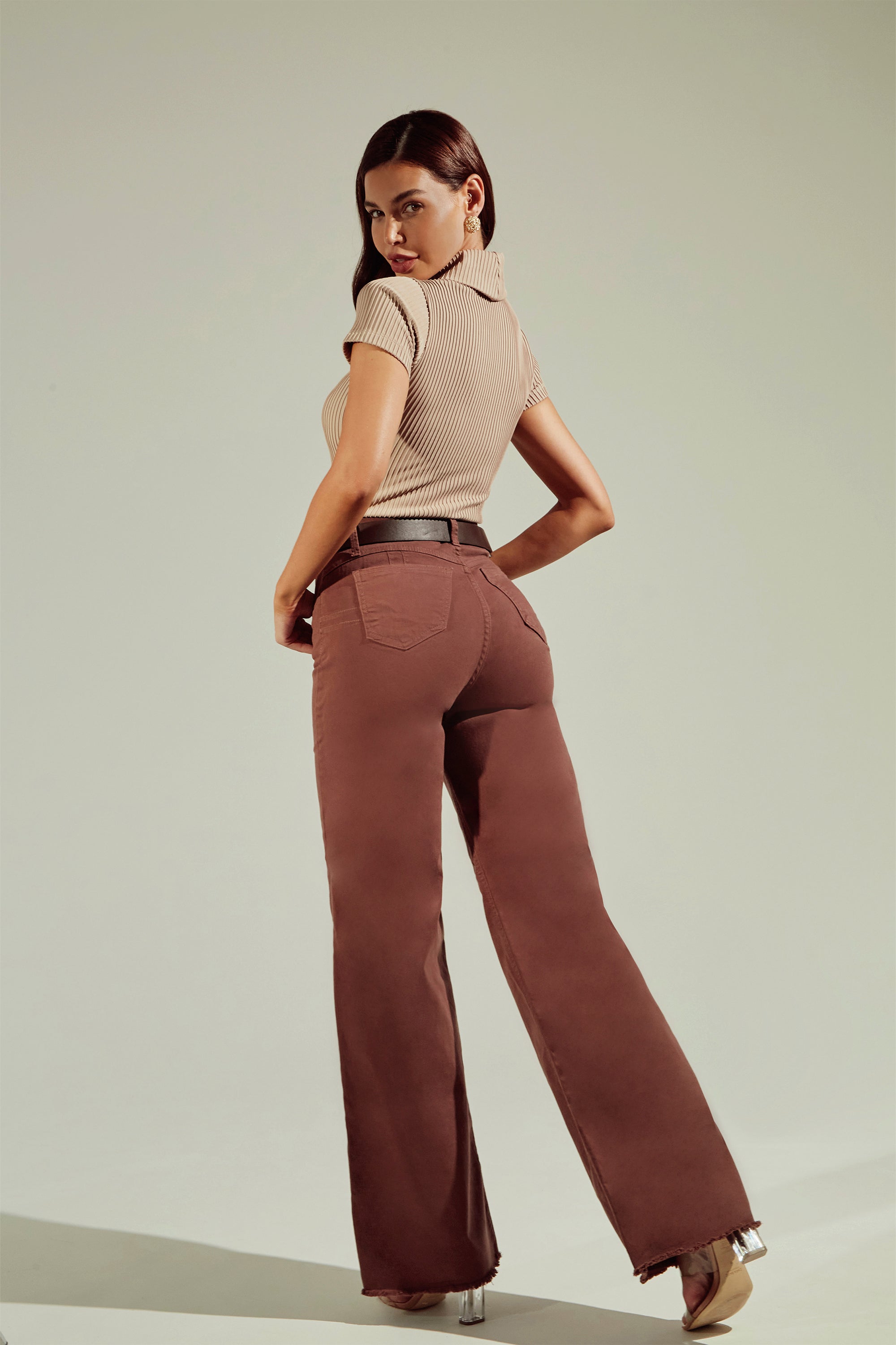 Desenvolvida com 90% algodão, 8% elastomultiester e 2% elastano, este jeans combina estrutura natural com elasticidade inteligente. O elastomultiester garante memória de forma e recuperação superior, mantendo o ajuste alinhado ao longo do dia. A modelagem flare equilibra proporções e valoriza a silhueta com sofisticação.