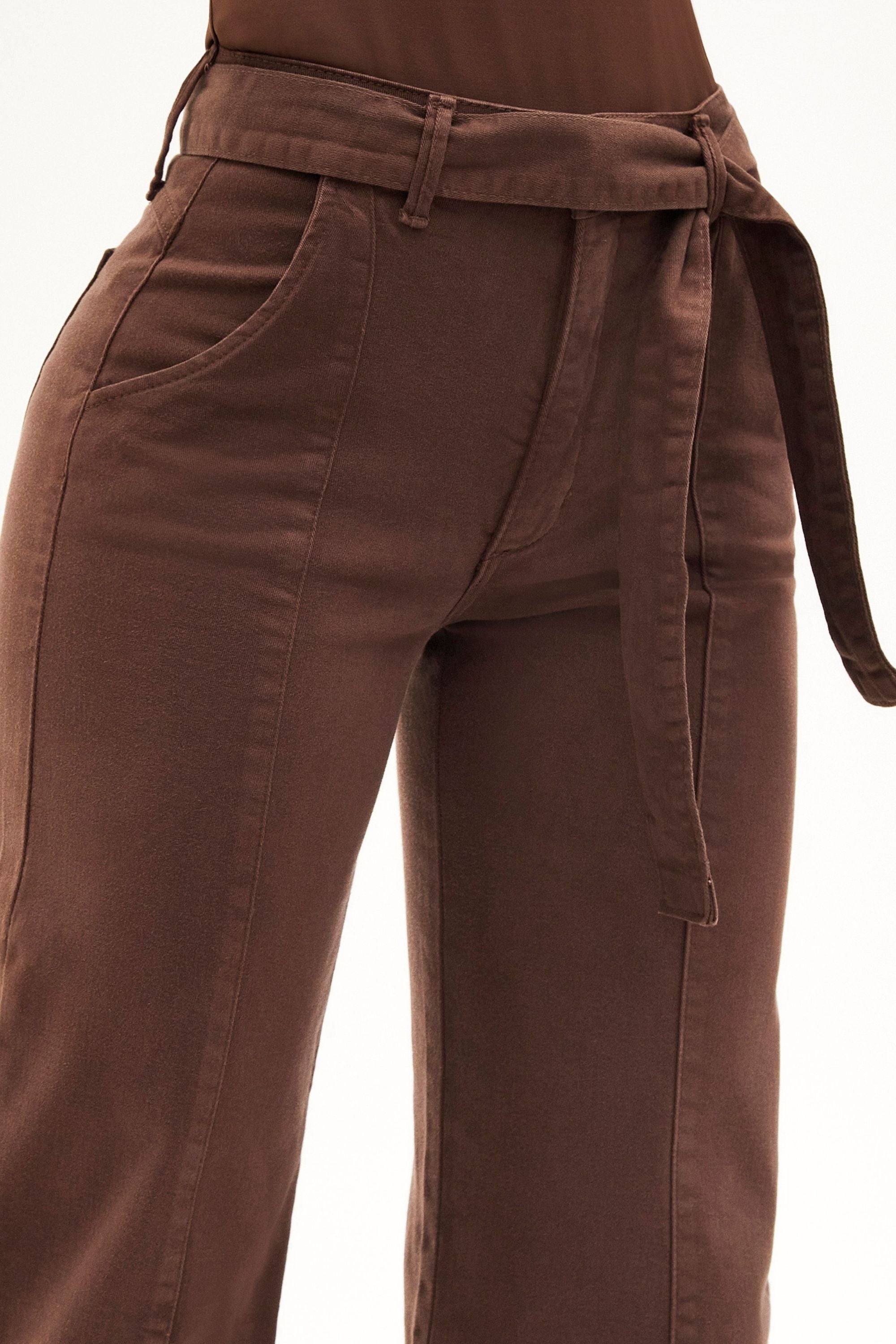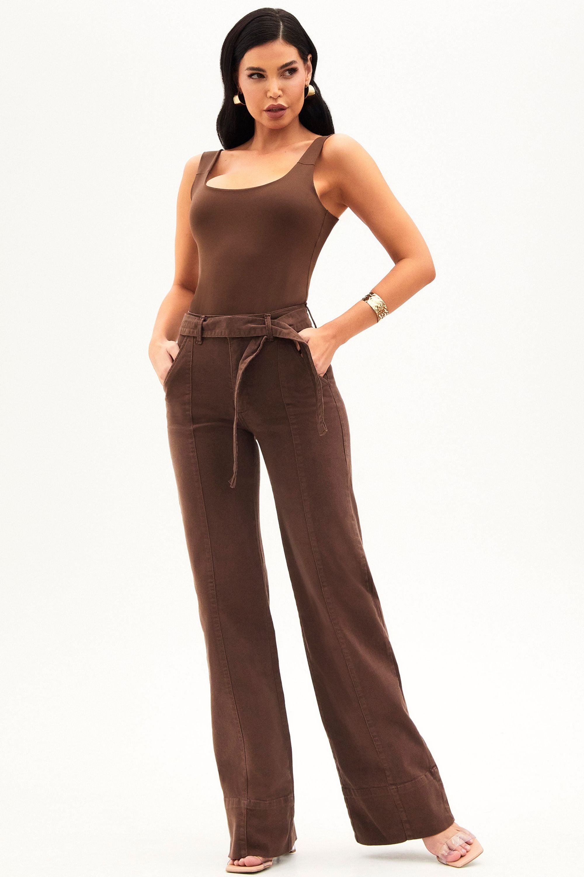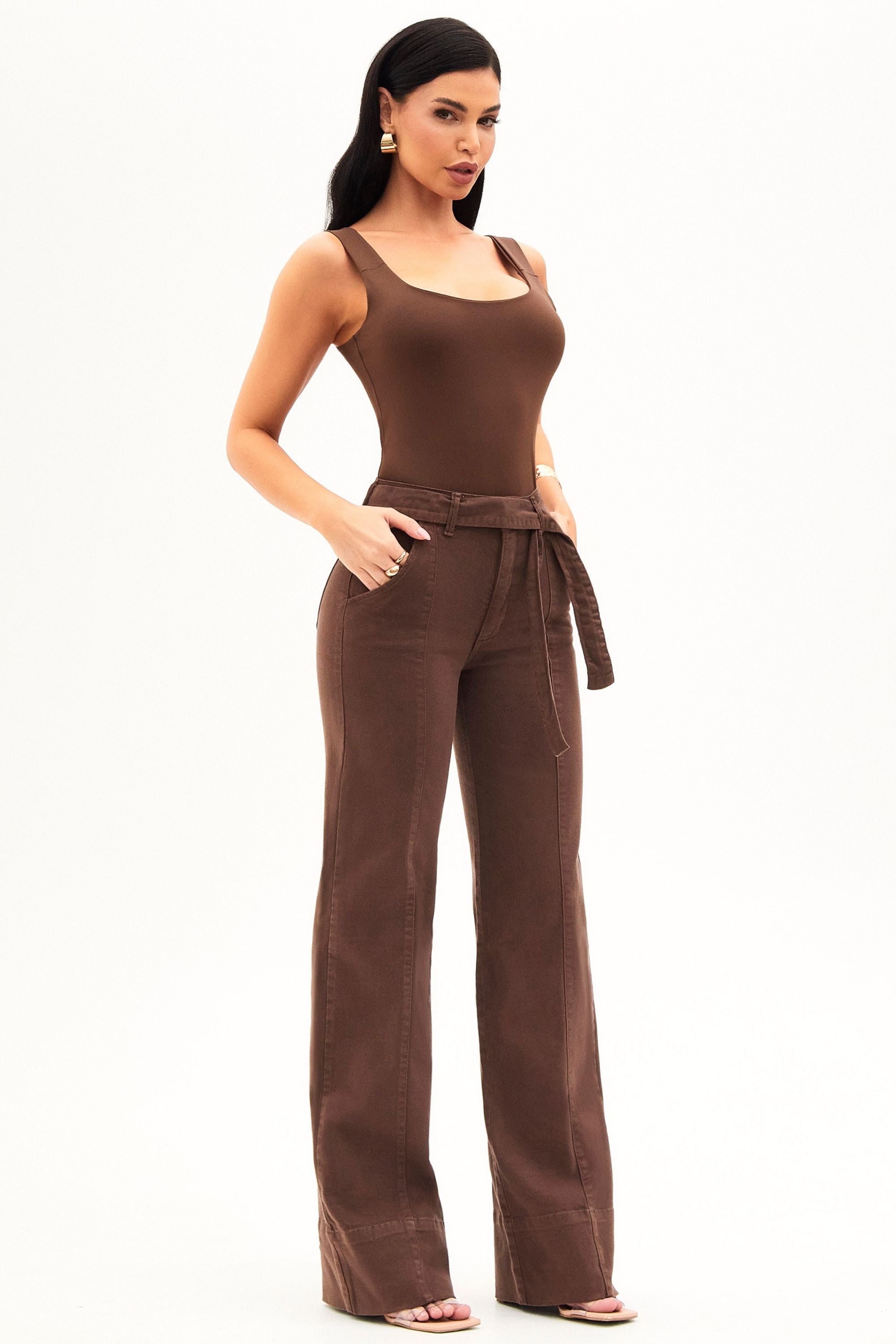 Antes conhecida como “a calça de rica”, a peça mais icônica da Modab evoluiu, e agora é Soul. Com cintura média, na cor marrom e shape wide leg com faixa, ela continua entregando o caimento impecável e o efeito modelador que conquistaram milhares de mulheres.