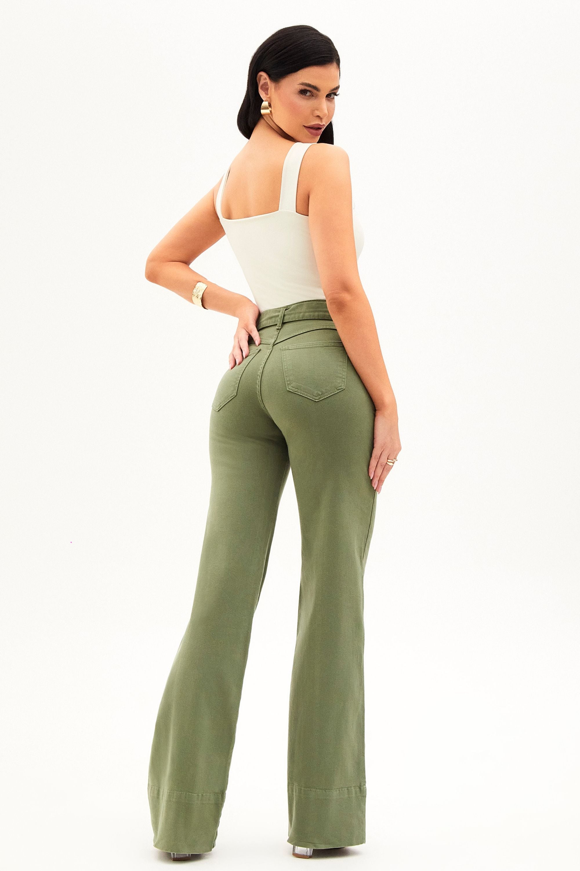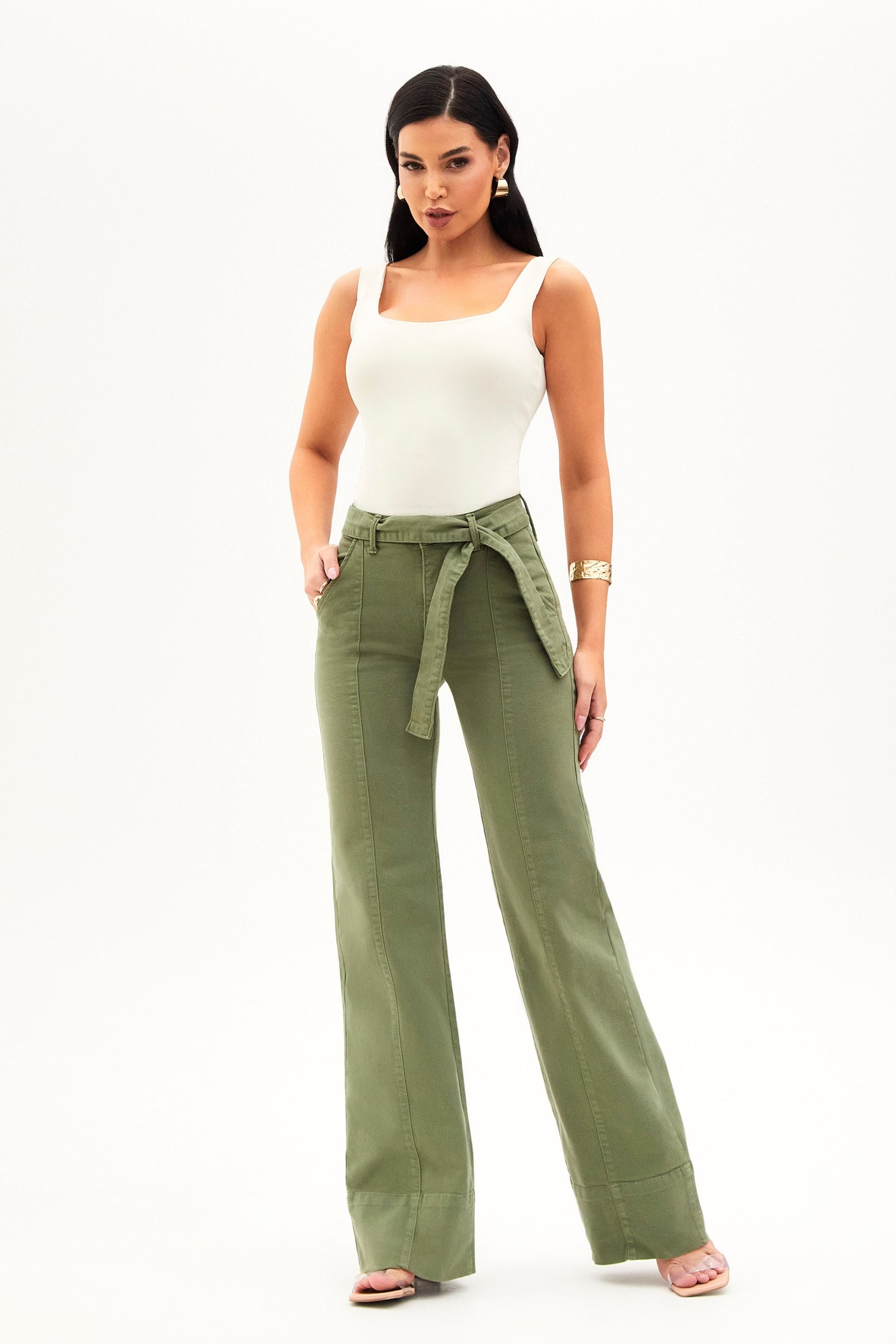 Antes conhecida como “a calça de rica”, a peça mais icônica da Modab evoluiu, e agora é Soul. Com cintura média, na cor verde e shape wide leg com faixa, ela continua entregando o caimento impecável e o efeito modelador que conquistaram milhares de mulheres.