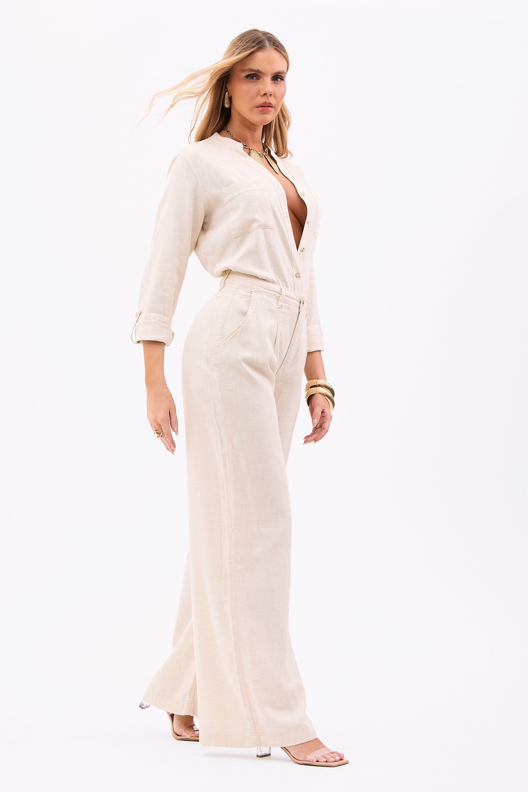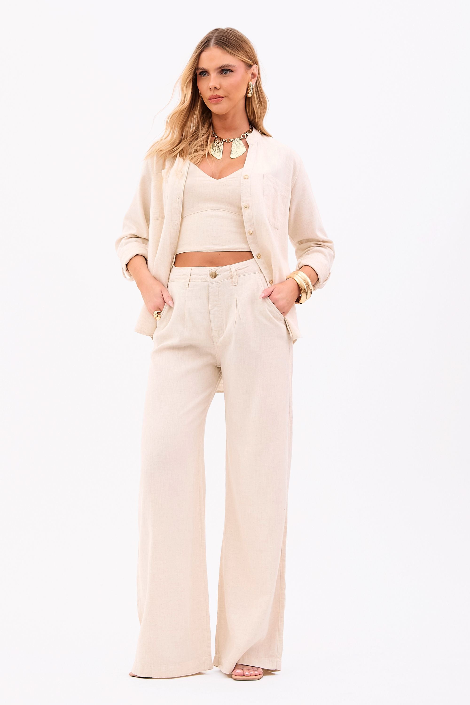 A Calça Pantalona Linho Térmico Estilo Alfaiataria Dunas Areia é tecnológica, elegante e leve. Apresenta modelagem pantalona, tecido ecológico e suavidade ao toque. Com caimento perfeito, é ideal para aquela combinação com camisa e salto alto! Você vai amar!