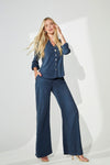 A Calça Pantalona Linho Térmico Estilo Alfaiataria Dunas Azul Marinho é uma peça clássica e atemporal. Apresenta modelagem pantalona, tecido ecológico e suavidade ao toque. Com caimento perfeito, é ideal para aquela combinação com camisa e salto alto para os dias mais quentes! Ame se amar!