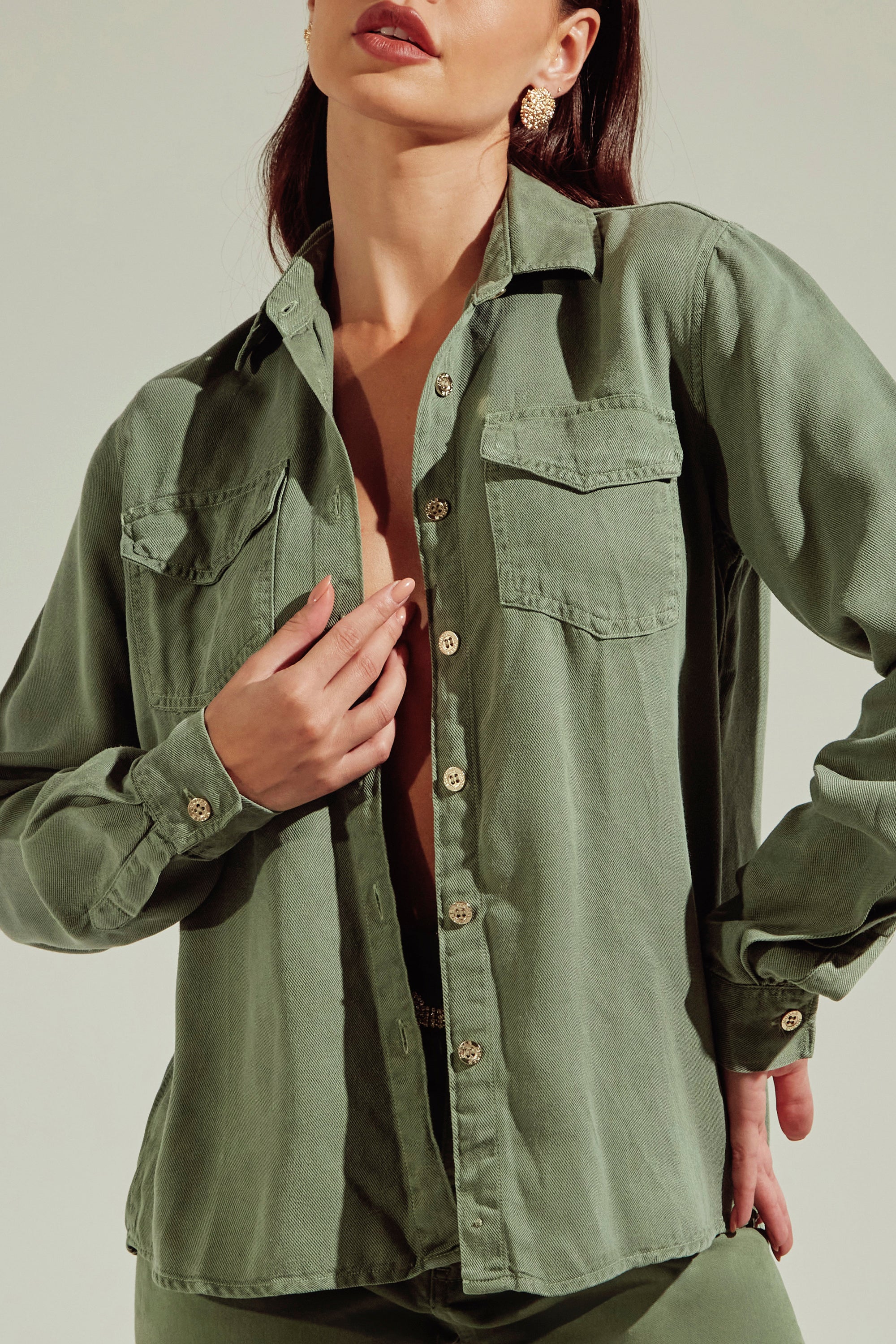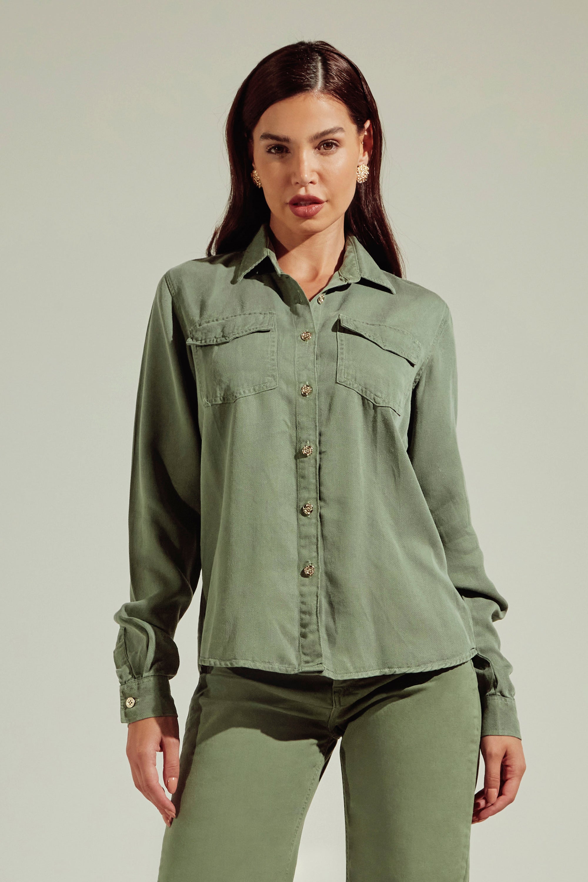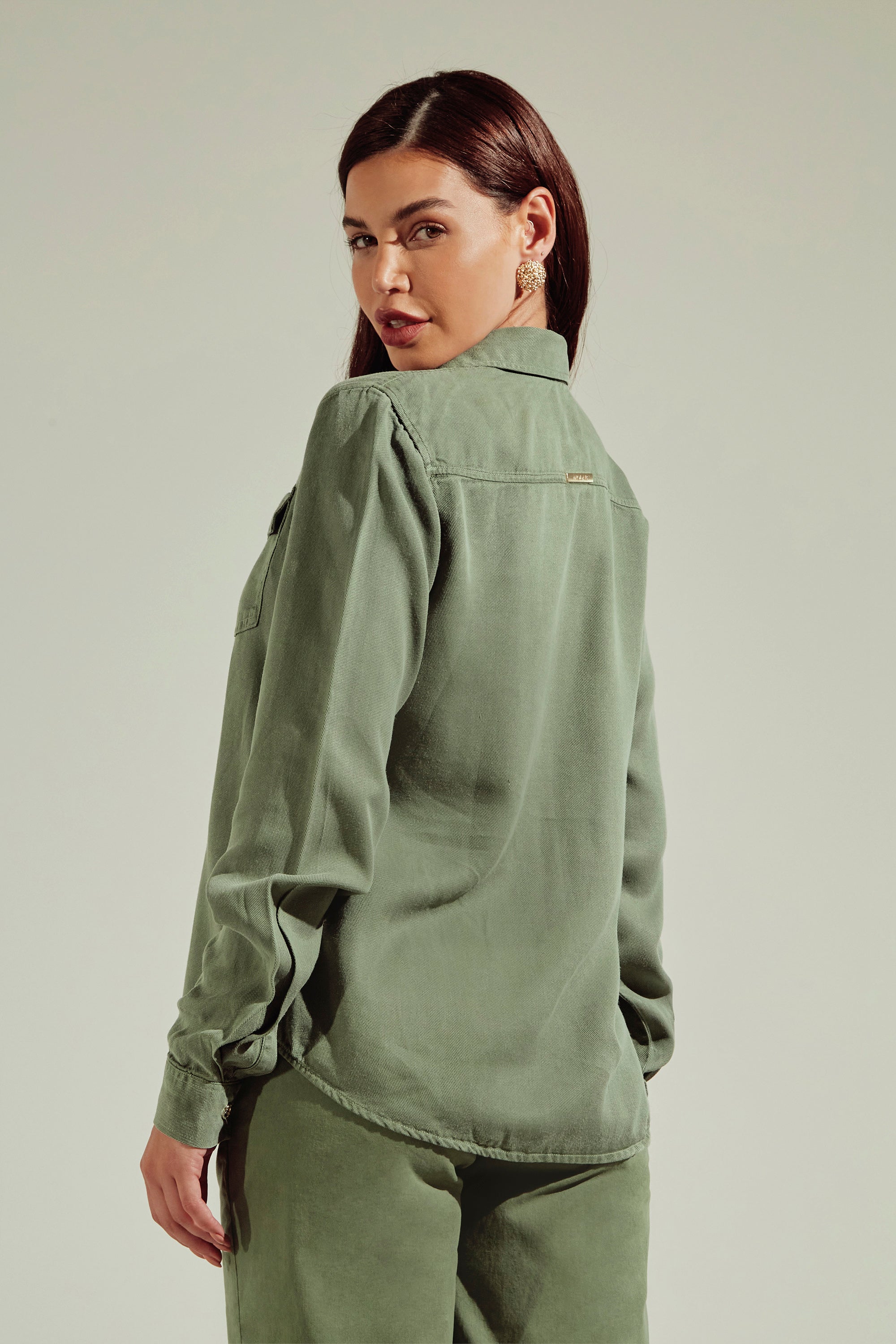 Camisa feminina de liocel com caimento fluido, toque macio e elegância natural. Versátil para trabalho, rotina ou produções mais sofisticadas.
