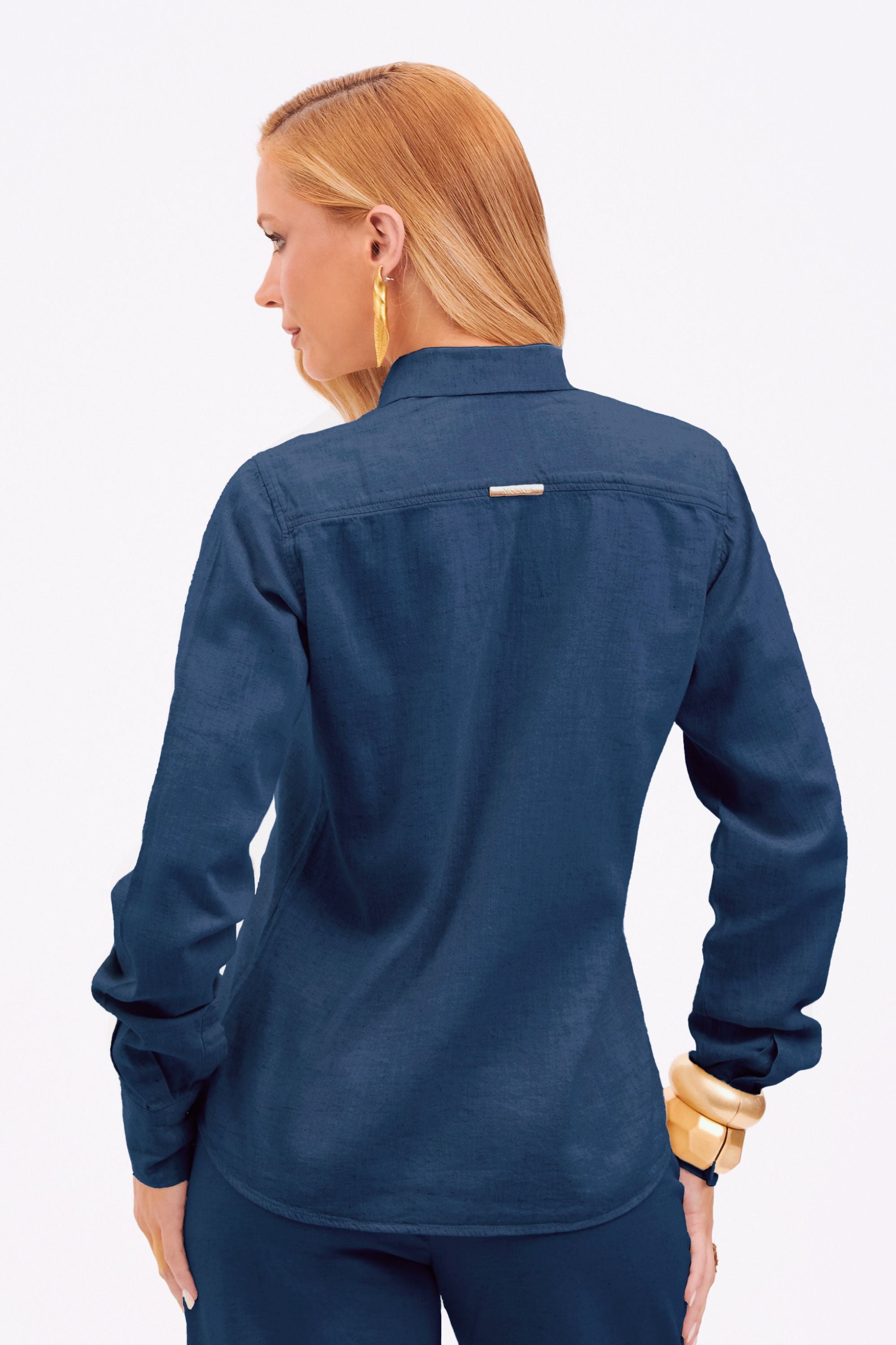 Camisa Feminina de Linho Clássica Dunas Azul Marinho