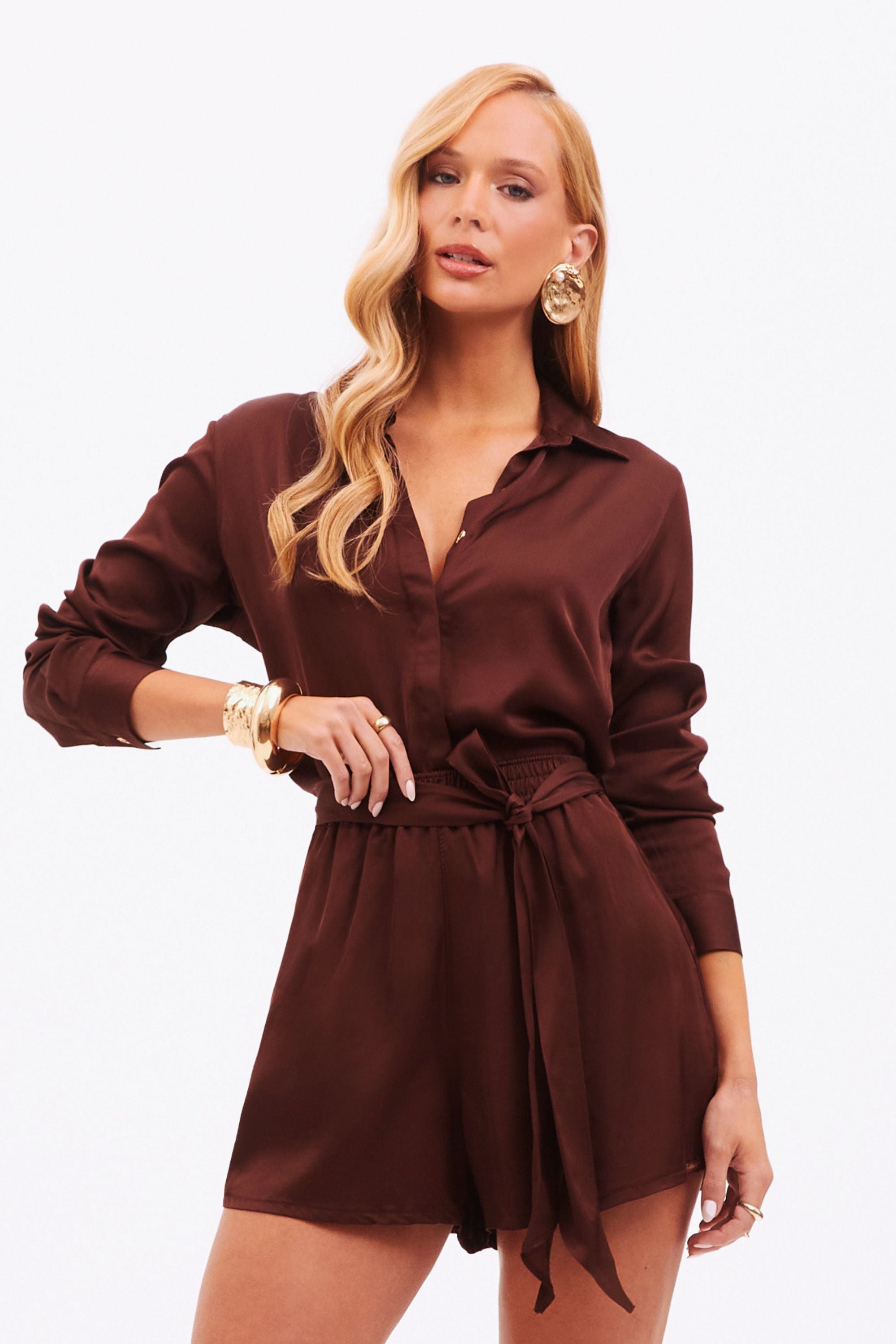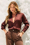 Camisa Feminina de Viscose Acetinada Essence Marrom – Efeito Light Seda