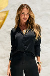 Elegância que se sente no toque. Composta por 100% viscose, esta camisa apresenta um efeito light seda, com brilho aveludado e sofisticado — diferente do cetim comum, que reflete de forma mais intensa.