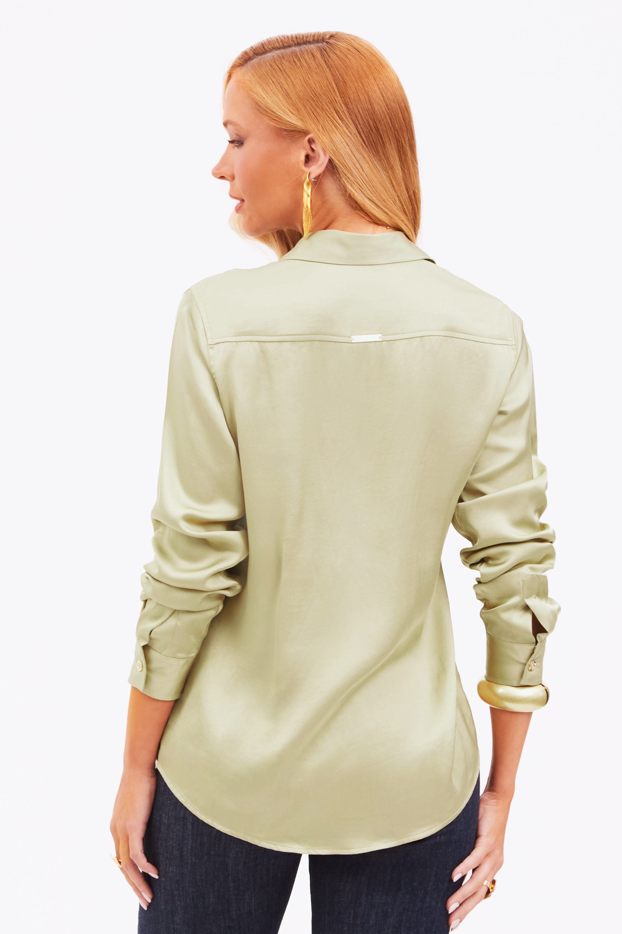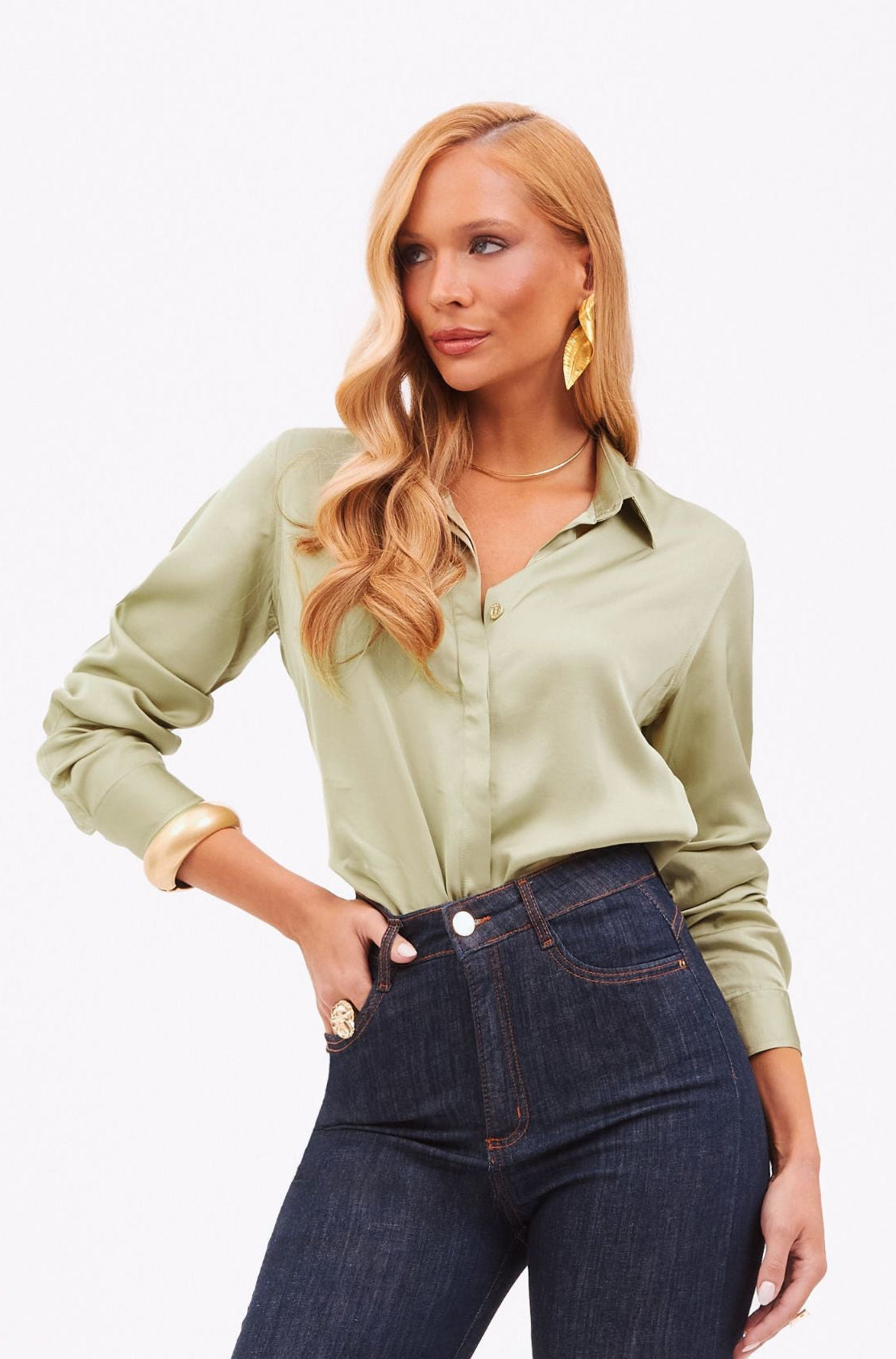 Camisa Feminina de Viscose Acetinada Essence Pistache  – Efeito Light Seda