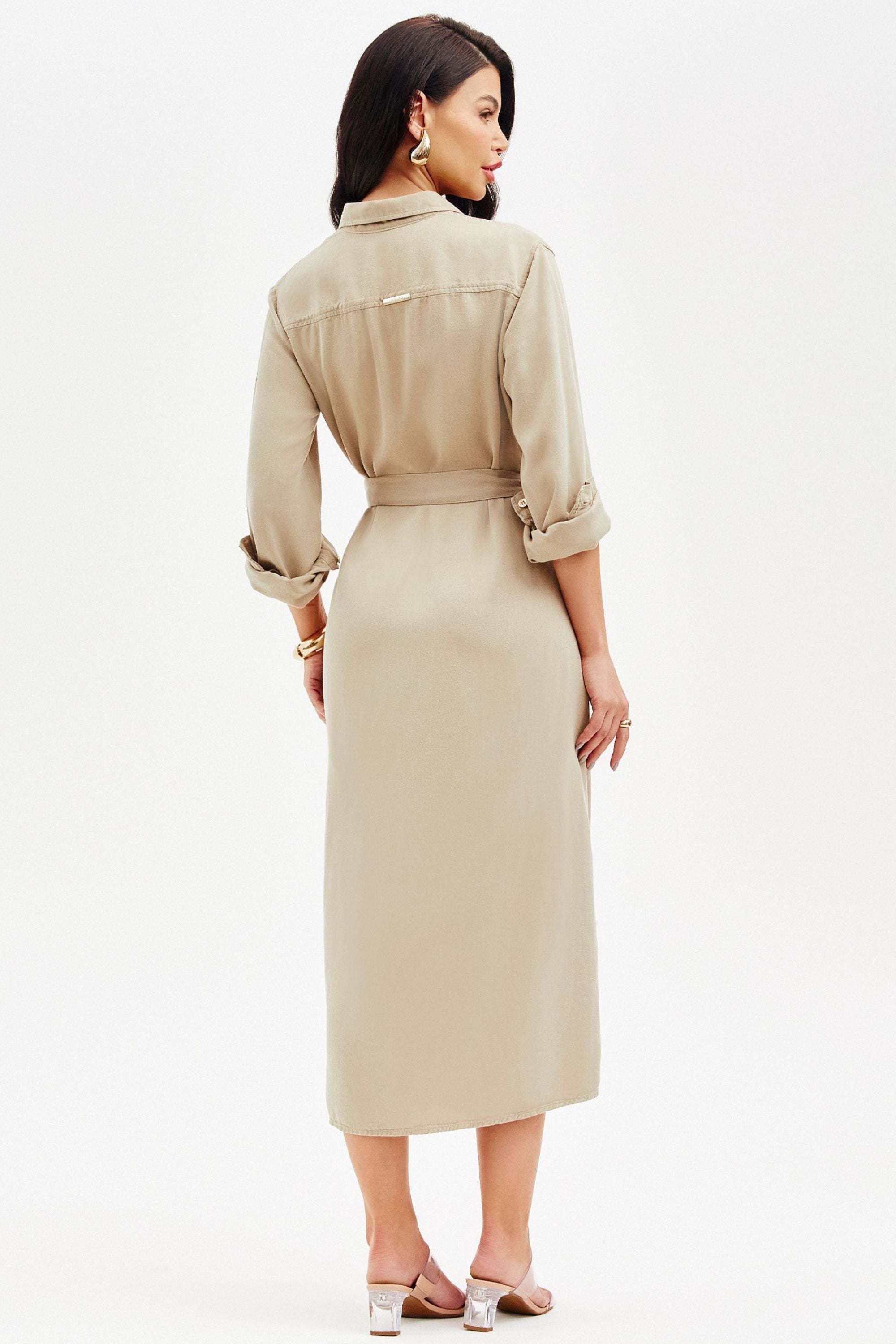 • A modelagem é sofisticada, elegante e com silhueta alongada e cinto;