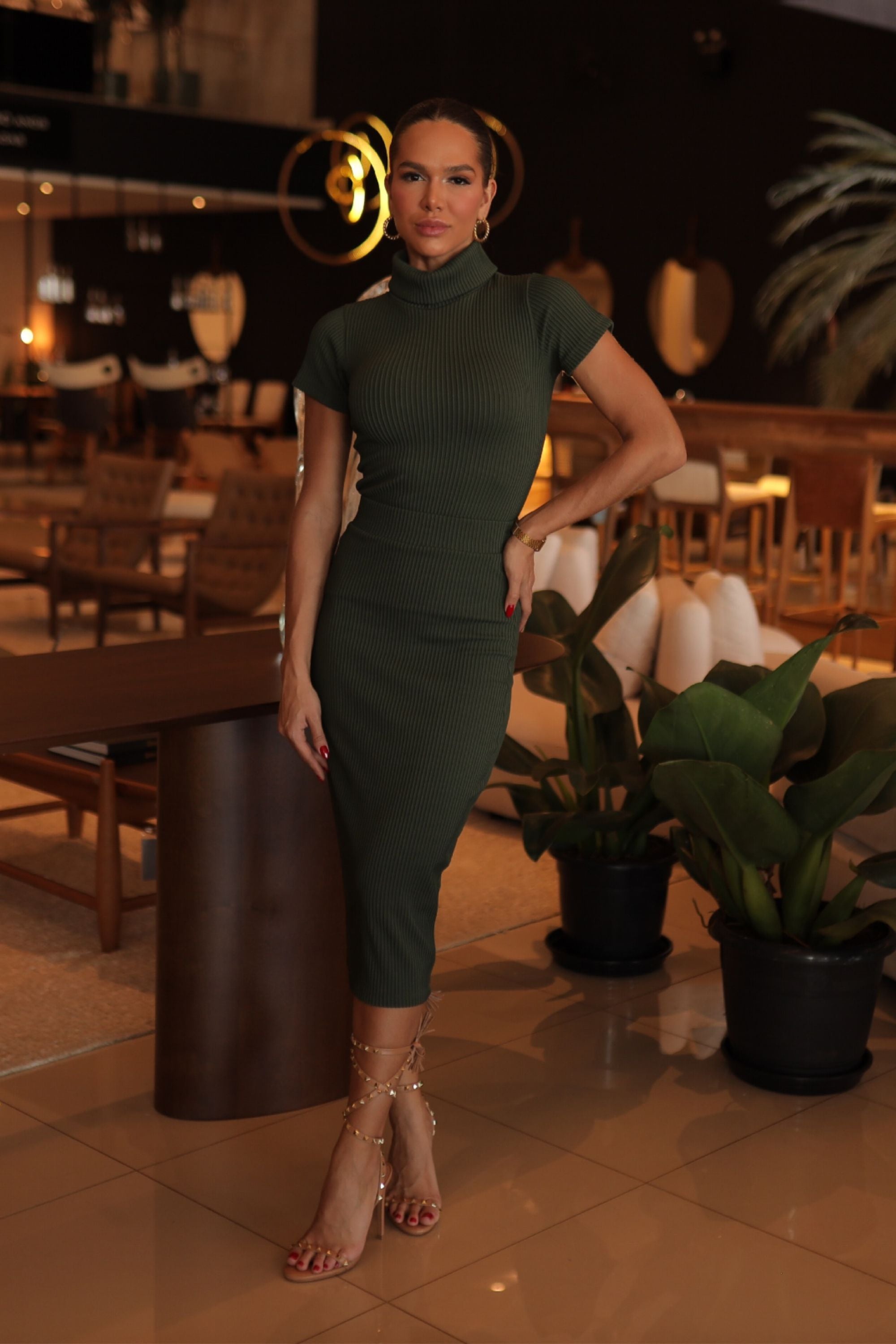 Saia Midi Canelada Verde